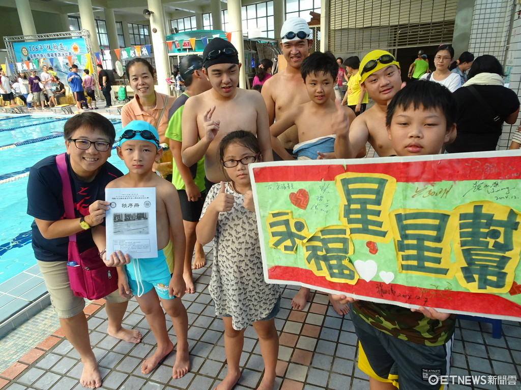 ▲台南市永福自閉症巡迴班,從去年開始為孩子開設「100小時學游泳」課程,許多星星兒都努力學習游泳。(圖/永福提供)