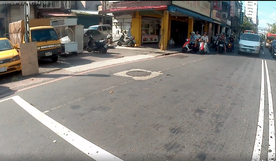 葉姓車友24日凌晨分享行車紀錄器畫面,只見23日上午8時許,他騎車經過中正路、思源路口時,前方號誌紅燈,卻只有少少幾輛汽機車停在停止線前等候,陽光強烈,機車等待區許多騎士都穿著長袖防曬,後方卻詭異地空了約2輛汽車的距離!