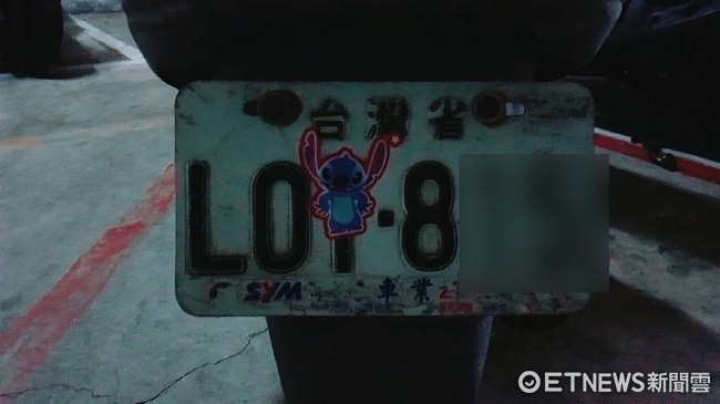 ▲江姓通緝犯還將自己的機車車牌張貼可愛貼紙以避查緝。(圖/中壢警分局提供)
