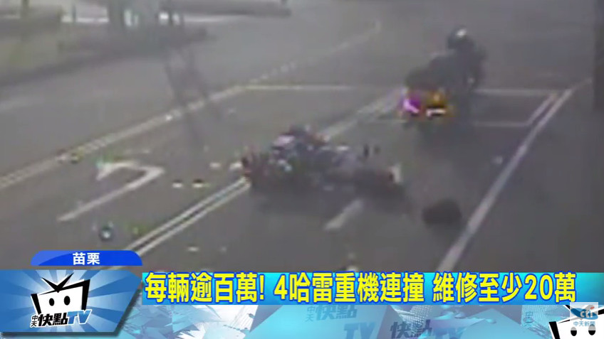 苗栗前天發生一起哈雷重機連撞事故,4名車友相約從桃園騎車到大甲,沒想到行經苑裡鎮時,其中騎在最後面的52歲翁姓騎士疑似精神不濟,追撞前方等紅燈的車友,4部重機撞成一團,肇事騎士血流滿地,幸好送醫之後沒有生命危險。