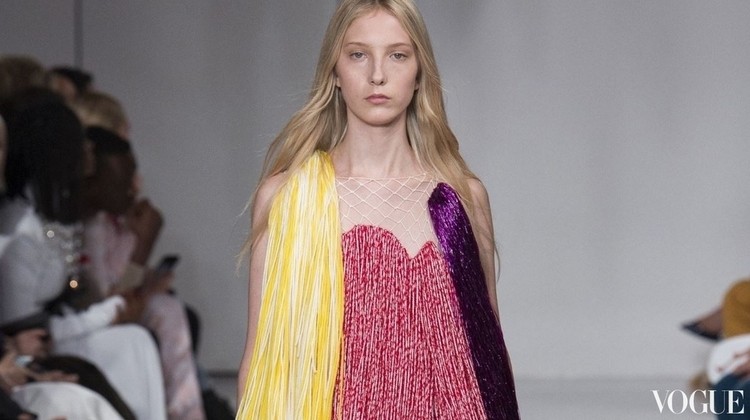 然而,這些服裝是六個月以前冬季的成果。本週的2018春夏系列發表會令人熟悉。Calvin Klein紐約總部內有著相同的場景,同樣以緞帶為概念裝飾,幾乎都是血紅色或者陽光橘,高掛在頭頂上作為裝飾。