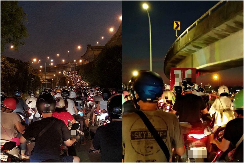 行經華江橋要返家,不少板橋騎士被這一幕嚇壞,趕緊調頭改道萬板橋!事發於27日晚間6時許正值下班尖峰時段,華江橋引道突然大塞車,整片機車海一路綿延至橋上,驚動警方。「台灣奇景」的壯觀場面引發熱烈討論,網友驚呼連連,直說「出超夢了吧」、「跨年預演」、「要倒數了嗎?」