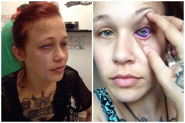 綜合外媒報導,24歲的凱特是名寵物營養師,原本身上就有不少刺青的她,日前想嘗試在眼白上動手腳,於是找了一名刺青師幫她在眼白上刺青。沒想到卻因為刺青師加了太多沒稀釋的墨水引發細菌感染,讓凱特在刺青完的第一個禮拜就開始使用抗生素跟類固醇,但依然無法改善眼睛刺痛的狀況。