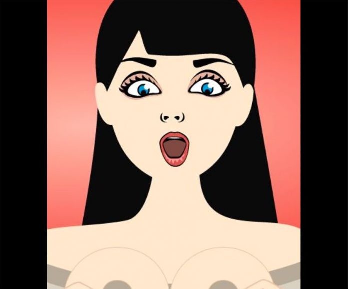 這 這則爭議性的廣告,主體是一幅疑似裸露上身的女性畫像,上方有OMG(我的天!)字樣,女子胸前的弧形疑是部分裸露的乳房,用性暗示吸引網友點擊。