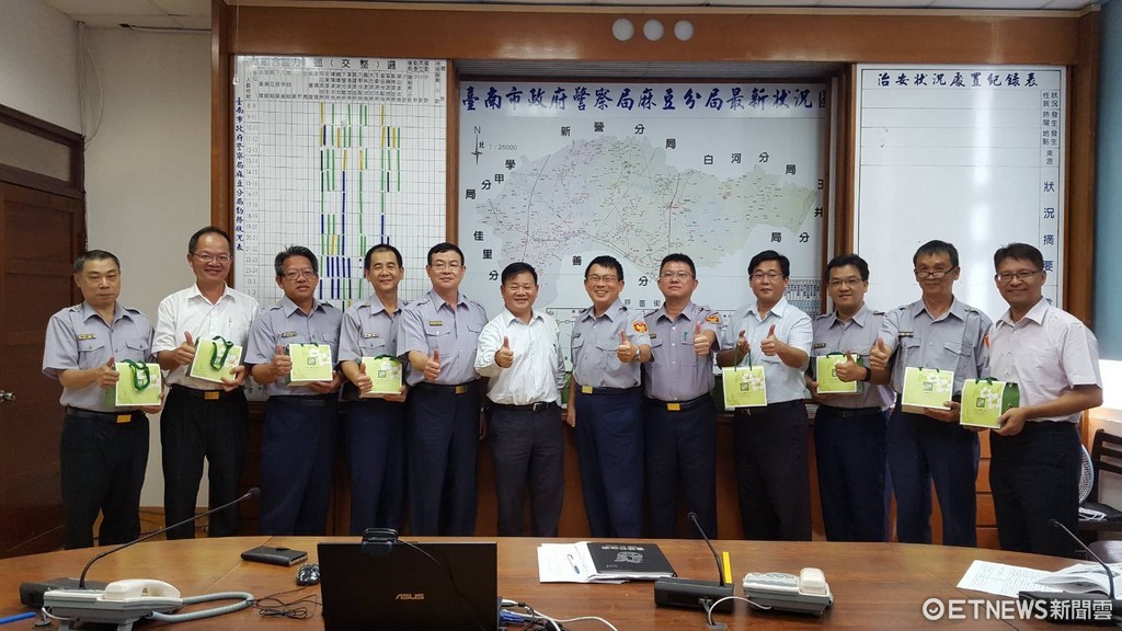 ▲台南市警麻豆分局警友會主任張青鑑,致贈茶葉禮盒給各單位員警,預先共度中秋節。(圖/警方提供)