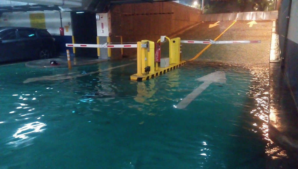入夜後狂風暴雨,驚人雨勢嚇壞當地人,宜蘭地區陸續傳出積水情況,其中宜蘭大學地下停車場水淹及腳踝,嵐峰路二段馬路也淹水,趕緊拉起封鎖線,市區也都因排水不及,導致排水孔蓋直接被撐開,水花直衝天際,許多當地人趕緊發文分享慘況,提醒大家趕快出來移車、防淹!