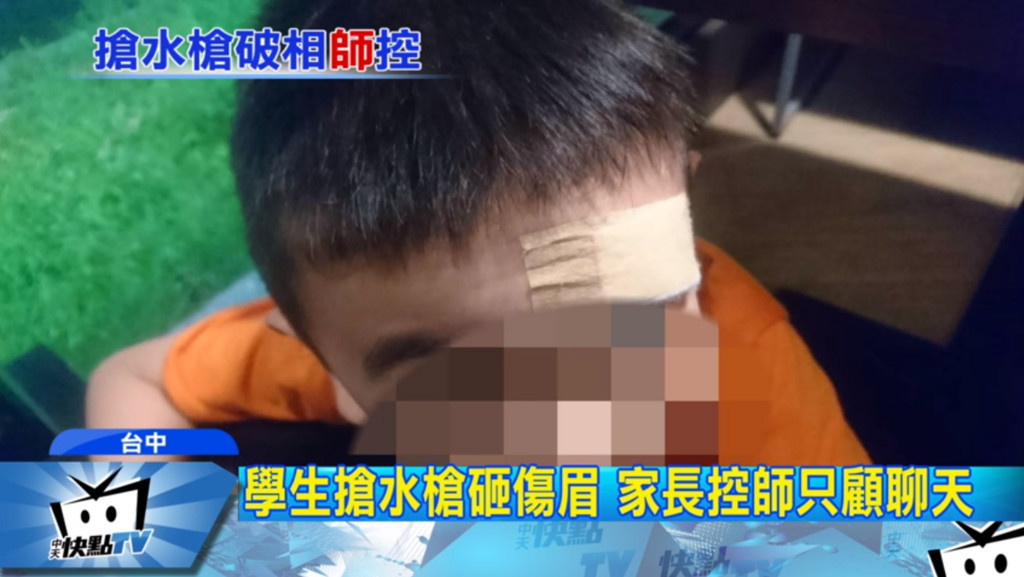 ▲台中一名小2男童被安親班同學用水槍打破頭。(圖/翻攝中天新聞,下同)