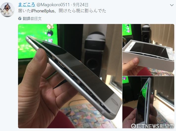 ▲日本Twitter用戶Magokoro0511貼出iPhone 8 Plus手機無故隆起的照片,引發各界關注。(圖/取自Twitter)