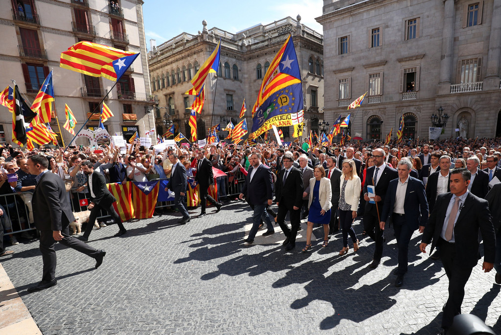 ▲數百名加泰區政府高級官員走上街頭,抗議馬德里中央政府打壓加泰隆尼亞獨立公投。(圖/路透社)