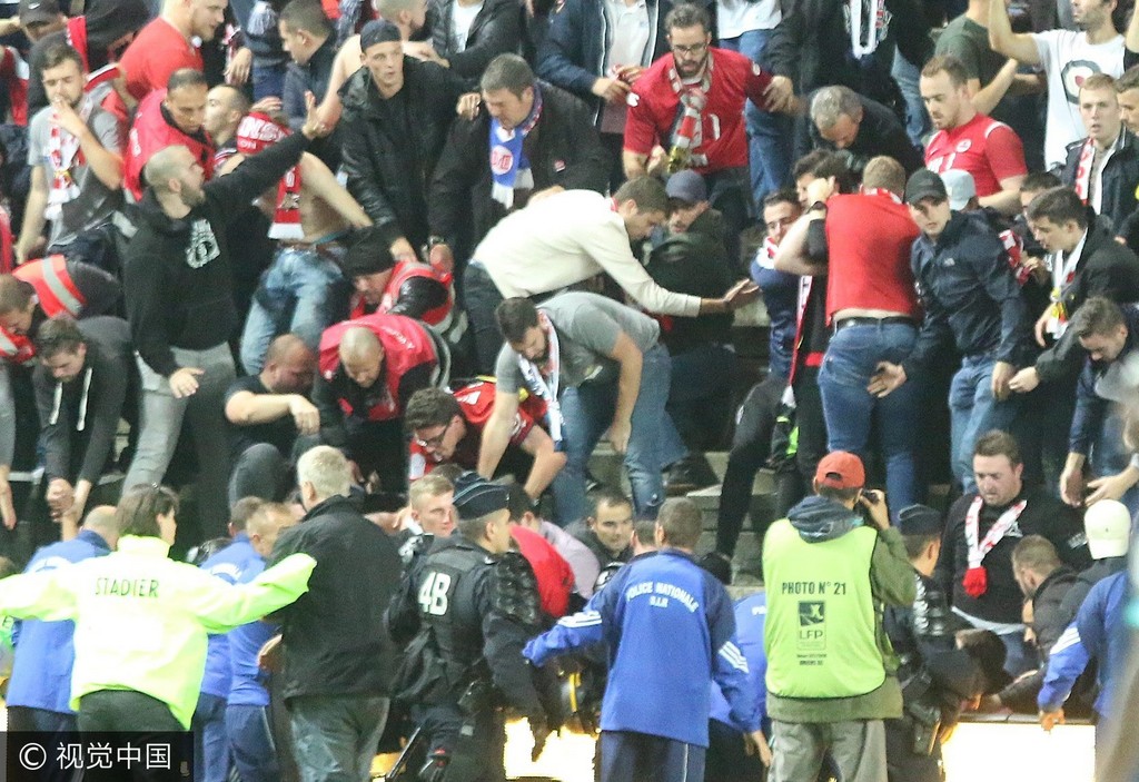 ▲ 球迷集體摔下看台,場面一度陷入混亂。(圖/視覺中國CFP)