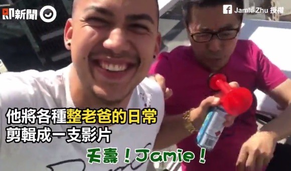 澳洲網紅Jamie Zhu時常拍攝「整人影片」,近日又再將目標放在爸爸身上,不管是照相、起床,甚至喝水都被惡搞,但是爸爸的反應卻超可愛,不但逆來順受,也沒有生氣,只是無奈的叫著兒子的名字,讓網友都大為羨慕。