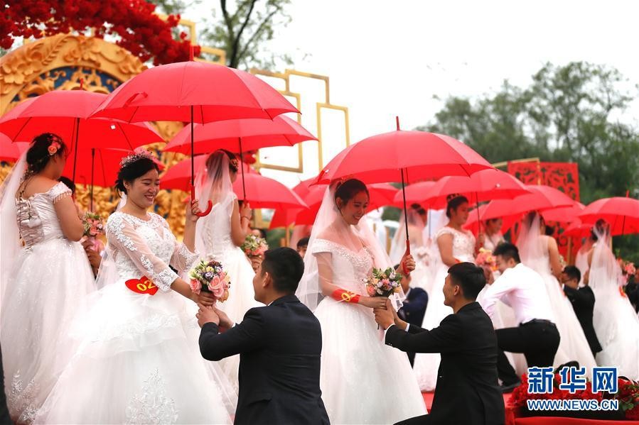 ▲29對新人在大陸國慶當天舉行集體婚禮。(圖/翻攝自新華網,下同)