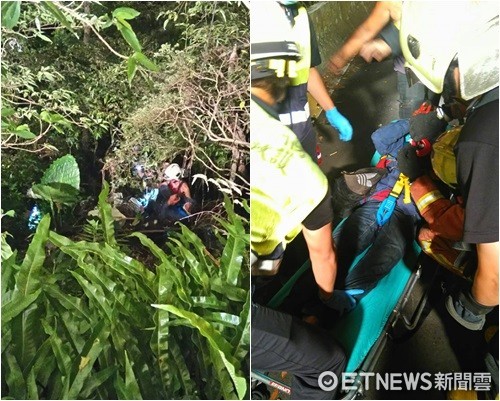 新北市消防局昨(1)日6時許接獲通報,指稱自己在三芝區巴拉卡公路5K處山谷處,聽聞到呼救聲響,但只聽到聲音,就沒見到蹤影,消防人員到場後開啟照明燈,赫見山谷下有一名40歲郭姓男子,表情痛苦無法移動,隨即以吊臂懸吊救援,經檢視為左大腿骨折,酒測值為零,緊急送往馬偕醫院救治。