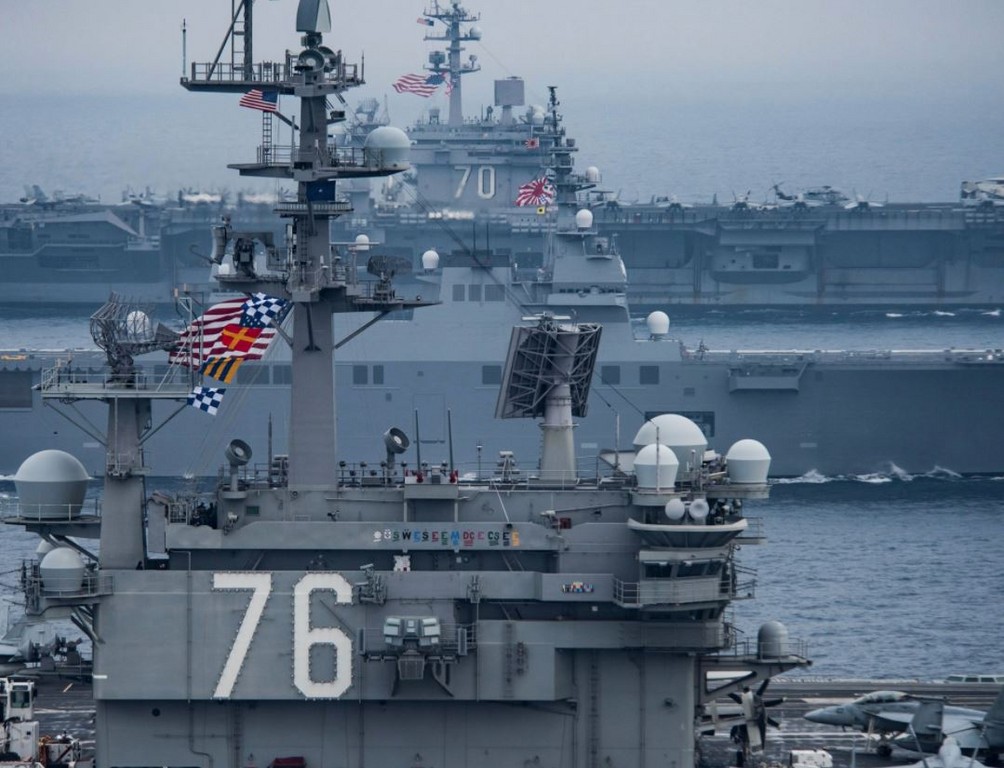 據《東亞日報》報導,中國已經允許美國的「隆納·雷根號」核動力航空母艦(CVN-76,10.2萬噸),15日從香港啟航北上,前往「北方限制線」附近與南韓軍隊一同展開大規模聯合軍演。分析人士認為,中國一直強烈反對韓美聯合軍演,此次允許美國航母從香港啟航前往北韓附近海域舉行武力示威,是中國對北韓的施壓信號。