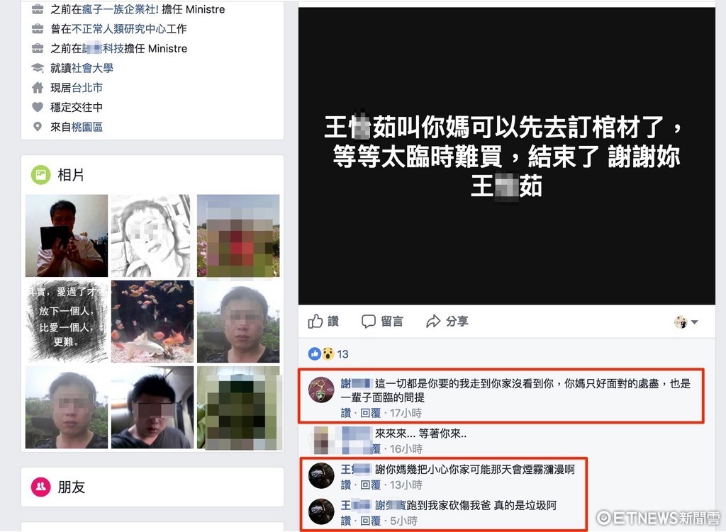 ▼謝男在臉書上嗆聲,王女也在下面留言對槍。(圖/記者柳名耕翻攝)