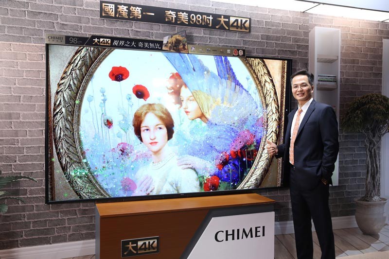 CHIMEI奇美家電品牌總經理余泯樂表示,隨著全球4K大尺寸顯示器市場爆炸性成長,奇美在大尺寸上特別著墨,今年特別推出國產最大尺寸98吋以及75吋大4K液晶顯示器。現場除了以98吋展示最新廣告首播外,另結合了由艾伯特電通所提供現今最夯的AR技術體驗,讓大4K的效果更加顯現,並說明了大4K的多重用途。余泯樂說,CHIMEI今年液晶顯示器整體出貨量上看17萬台,其中4K機種約佔35%,期望目標能拿下4K市場的20%的市佔。相信隨著新款的大4K液晶顯示器上市,必能帶動年底另一波的熱賣商機。