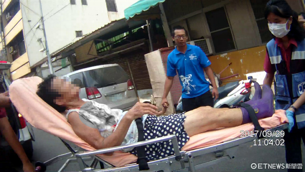 救人救到自己兄弟的媽媽,在鄉里間平添佳話!台南市警新營分局鹽水分駐所日前獲報,鹽水區信義路與康樂路口,1名老太太倒臥路邊,需要協助,巡佐蔡宗隆、警員陳文彬及楊雅筑等接獲通知,火速趕往現場,結果發現受傷的老太太竟是同所兄弟葉晉豪的母親,幸虧有同事即時幫忙送醫,避免憾事發生。