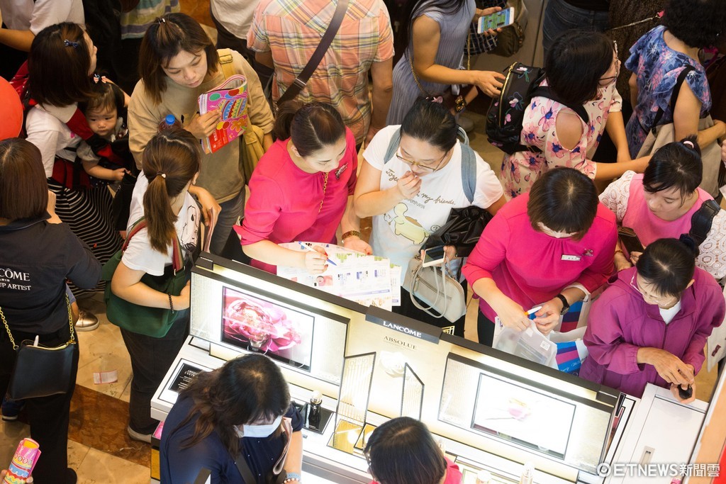 今年新光三越真的拼了,雖然年中沒有祭出比去年還殺的「超級卡利High」檔期,周慶美妝卻祭出少見的滿2,000送200低門檻,新光三越執行副總吳昕陽表示「就是要拚年輕族群來消費」,買1至2件單品就能有回饋,吸引千人在未開店前排隊等候。