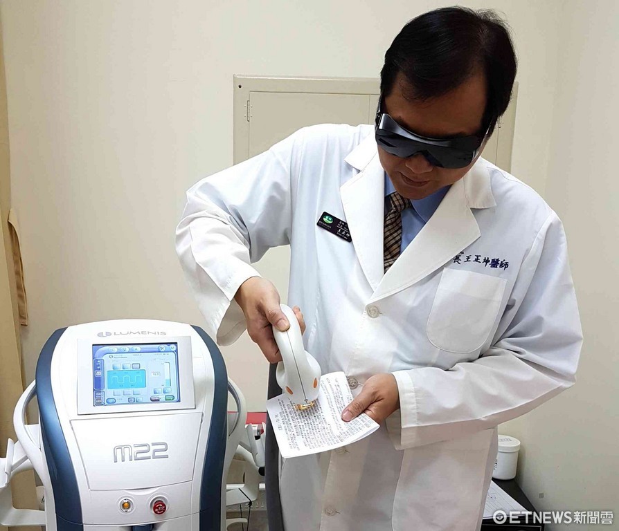 ▲預防臉部脈衝光燙傷,中華民國醫用雷射光電學會理事長王正坤醫師,示範雷射灼傷模式的差異性。(圖/王正坤提供)