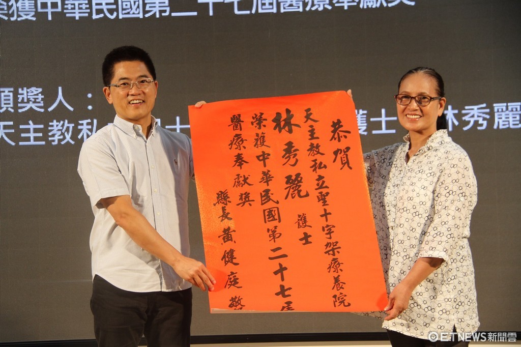 天主教私立關山聖十字架療養院林秀麗護士,20多年來積極熱誠地投注偏鄉居家護理及療養院照護工作,照顧老弱貧病不遺餘力,榮獲中華民國第27屆醫療奉獻獎殊榮,黃健庭縣長5日在縣務會議及主管會報中頒贈紅榜表揚及感謝。