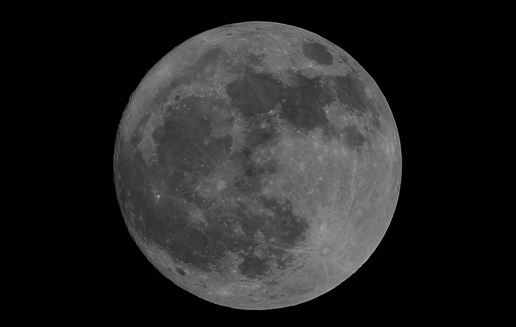 ▲氣象局指出,5日月面約在方位270度的月緣仍有部分微暗,還不是真正的滿月。(圖/中央氣象局)
