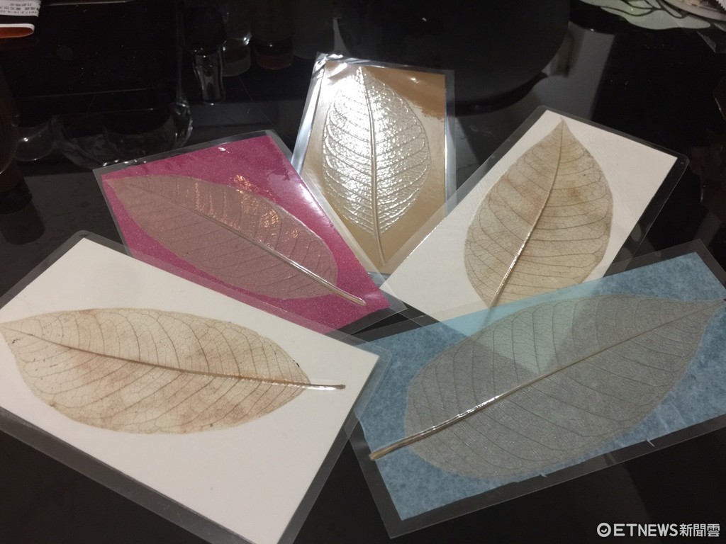 ▲李石德研習古法,巧妙利用玉蘭花老葉製成精美透明書籤,因薄透猶如夏蟬之翼,不禁令人眼睛一亮嘖嘖稱奇。(圖/記者林悅翻攝)