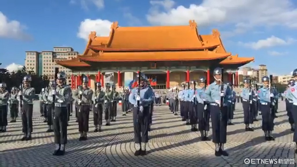 ▲三軍樂儀隊在中正紀念堂進行國慶預演。(圖、影/記者楊佳穎攝)