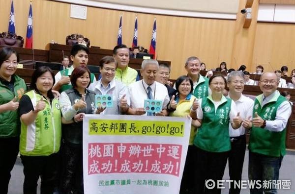 2017台北世大運風光落幕,桃園市已全力展開申辦2020世界中學生運動會(簡稱世中運)。桃園市議會民進黨團6日在市議會進行教育局工作報告時,為12日即將赴義大利,爭取世中運的市府申辦團加油、打氣,並送上甜點,期爭取成功,讓桃園名揚國際。