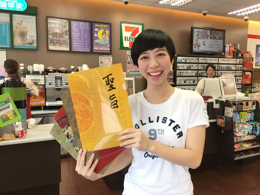 自10月7日起至10月10日的每天上午7:11起,只要於小7門市消費滿188元,即可免費獲得「故宮典藏限量A4文件夾」,共有「聖旨」、「欽定第一甲第一名」、「密奏」及「朕知道了」四款設計;其中「聖旨」文件夾上還印有明太祖「奉天承運、皇帝詔曰」御筆真跡。