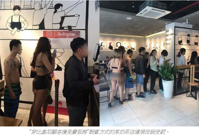 越南一家奶茶店為了吸引消費者,推出女性身穿比基尼就可免費飲用的優惠,果然讓許多打扮清涼的女性排隊購買,人流大增,但此舉也引起了越南各界的熱議,痛批這些女性「矮化自身人格」,相關部門也因促銷活動引起反感,考慮對有關店家處以罰款。