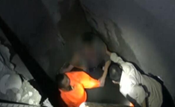 ▲酒駕男子遭消防員勸導半小時,才願意出井底。(圖/翻攝自《看看新聞》,下同)