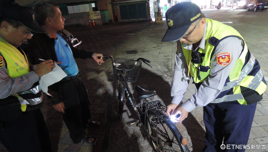 ▲台南市交警大隊購置「LED手環帶」及「腳踏車後座警示燈」,持續於交通安全宣導或勤務過程,配發予銀髮族及腳踏車族群及協助安裝。(圖/記者林悅翻攝)