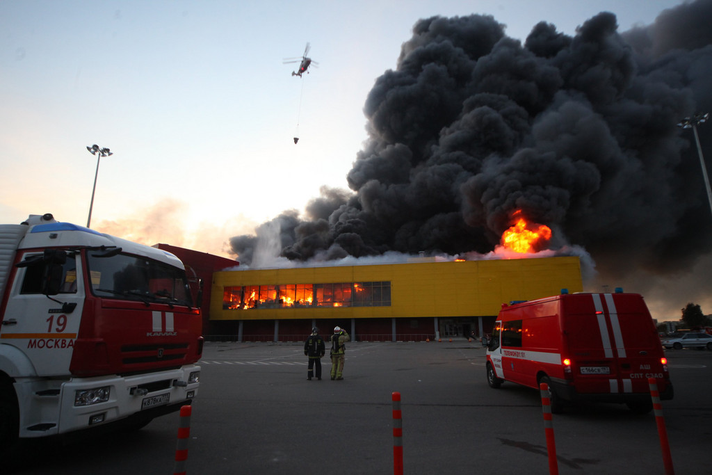 俄羅斯首都莫斯科市區一間大型賣場,當地時間8日驚傳火災,現場濃煙密布,燃起熊熊大火,不時傳出爆炸聲響,當局出動300名消防隊員、3架消防直升機到場支援,緊急疏散人數超過3000人,詳細起火原因尚待調查中。