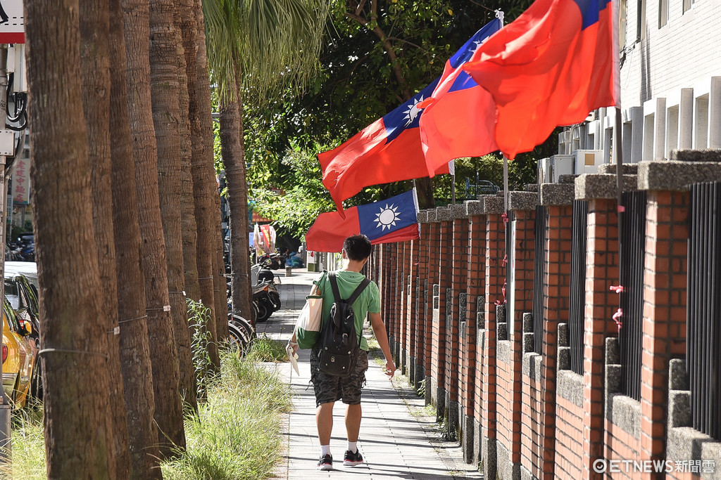 ▲建中生在南海路佈置國旗。(圖/記者李毓康攝)