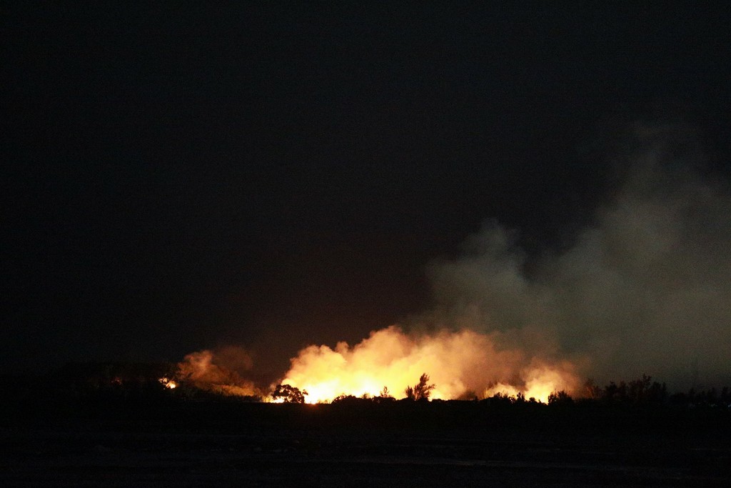 消防人員確認無人受困後,經半小時搶救,目前已將現場火勢完全撲滅。根據初步勘驗,現場僅約60坪的雜草遭燒毀,並未波及到防風林,也無人員傷亡,疑似是煙火爆炸產生的火星波及雜草才導致火警,但確切的起火原因仍有待後續進一步釐清。