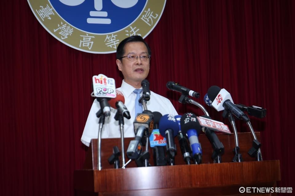 ▲馬英九被控教唆洩密無罪確定,高等法院庭長周盈文開記者會說明。(圖/記者周宸亘攝)