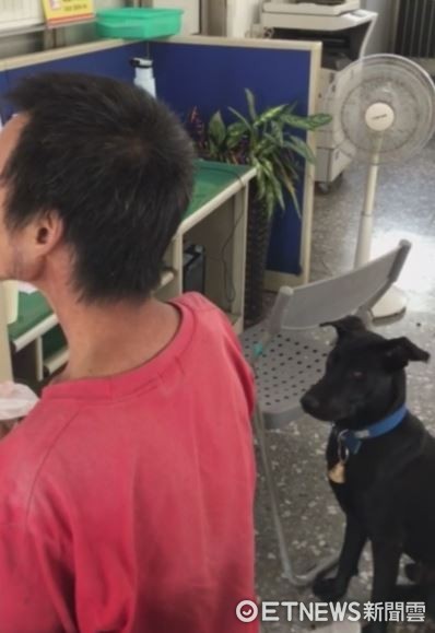 ▲新營分局後鎮派出所最萌的警犬「小黑」,看到警員帶人犯進來,立刻上前協助戒護人犯,亦步亦趨的跟著嫌犯,讓嫌犯也不敢輕舉妄動。(圖/記者林悅翻攝)