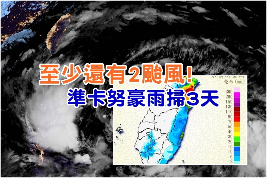 連假一結束,熱帶洋面開始變熱鬧!熱帶低壓即將發展為第20號輕度颱風「卡努」,中央氣象局持續發布豪雨特報,受東北風及「準卡努」外圍雲系南北夾擊,北北基、宜蘭4縣市12日將有局部豪雨或大雨發生機會,且降雨時間長,整天雨勢明顯,預計準卡努將一路向西走,不直接影響台灣,但雨勢將持續到周末。