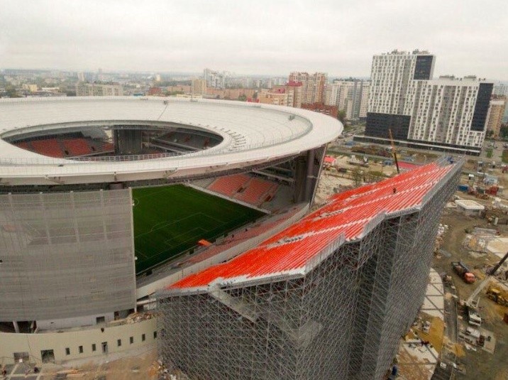 2018年足球世界盃將於俄羅斯盛大舉行,為了這個體育盛事,當地正努力建造各個場館。但位在葉卡捷琳堡的中央體育館卻被爆出,這座場館未符合世界足球聯合會(FIFA)的觀眾座位35000人規定,引起軒然大波。俄羅斯政府也不是省油的燈,立刻更改建築設計,把其中兩面各挖出一個大洞,在外面加蓋超大觀眾席。