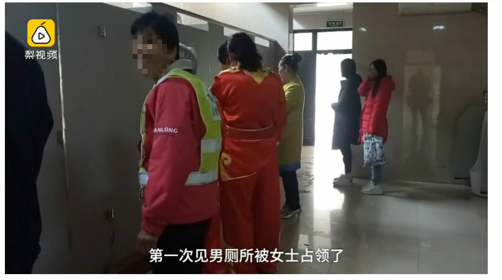 ▲一群大媽竟然佔據了男廁。(圖/翻攝自大陸梨視頻)