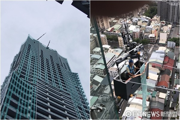 ▲台中工人進行玻璃更換作業時突颳起強風,受困30層高樓。(圖/記者莊智勝翻攝)