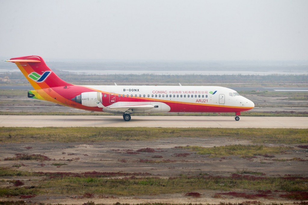 ▲ARJ21-700客機14日在山東東營勝利機場的畫面。(圖/翻攝自中國國防部官網)