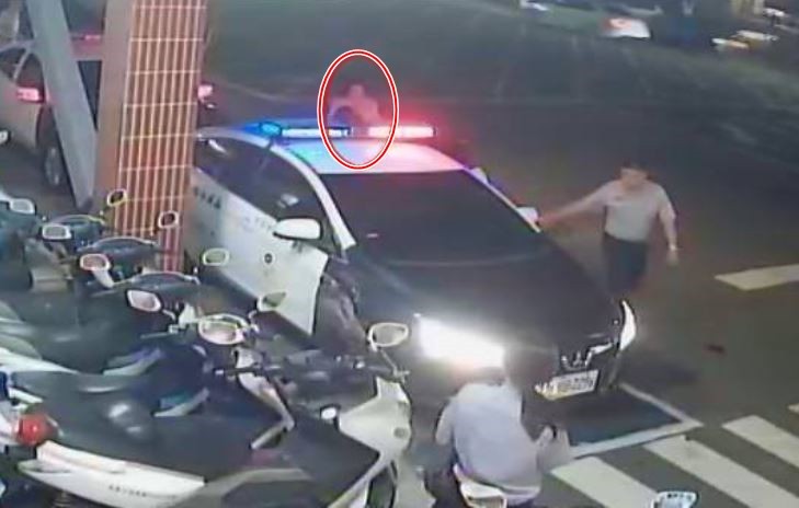 ▲媽媽急著把年僅6月大的女兒抱上警車,員警立刻飛車將民眾送往醫院。(圖/翻攝高市警方畫面)