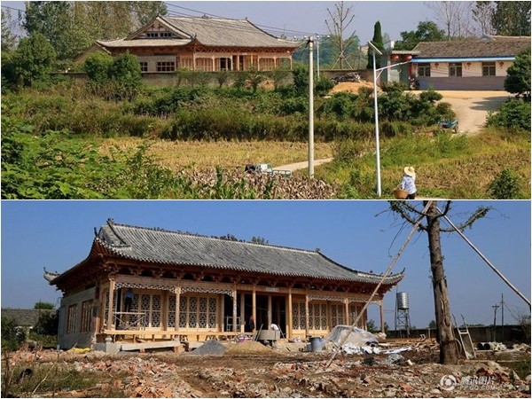 該建築在今年春節後開始建造,現在處於木工施工的階段,預計在年底完工,明年春節左右便可入住;這座「宮殿」採用木材按榫卯結構連結而成,其外觀的瓦楞、飛檐無不展現出濃郁的中國古建築特色。
