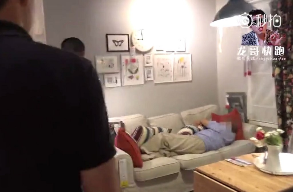 ▲奧客佔據IKEA沙發、床熟睡,被網紅吵醒。(圖/翻攝自龍哥快跑微博,下同)