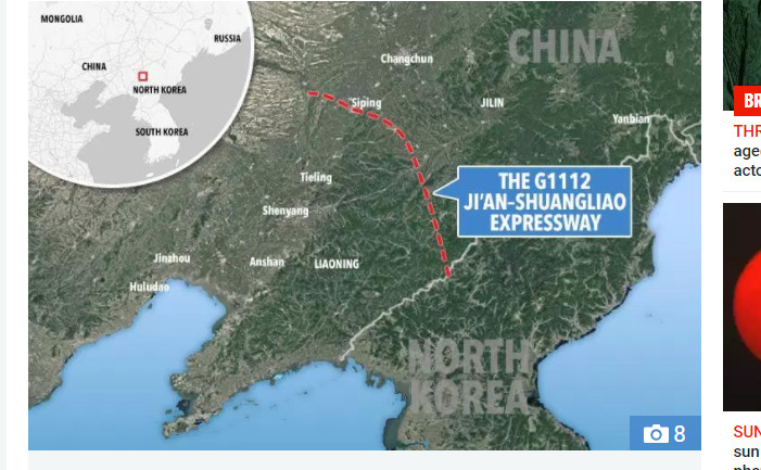 根據英國《太陽報》(The Sun)報導,大陸在人煙稀少的地區,建設了一條6線道高速公路,通往鄰近的金氏政權邊境,這條名為G1112集安-雙遼高速公路,真正的用途應該是為了讓坦克和部隊,迅速淹沒邊境,北韓所有的核設施幾乎都設置在距離這條邊境62英里(約100公里)左右的地方。
