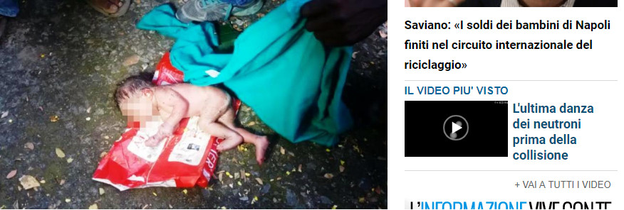 ▲印度女嬰遭到重男輕女的父母丟棄在垃圾桶內。(圖/翻攝自Il Mattino)