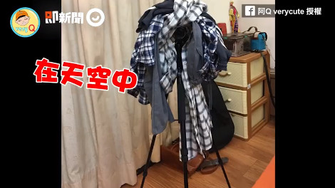 ▼飄浮空中的衣服和超明顯腳架,阿Q還說「我進門一看到差點笑場」。