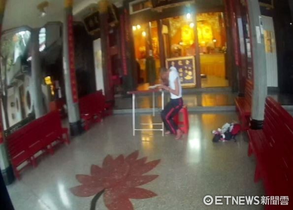 ▲欒嫌在內湖區1間廟拜拜時遭警方逮捕。(圖/記者柳名耕翻攝)