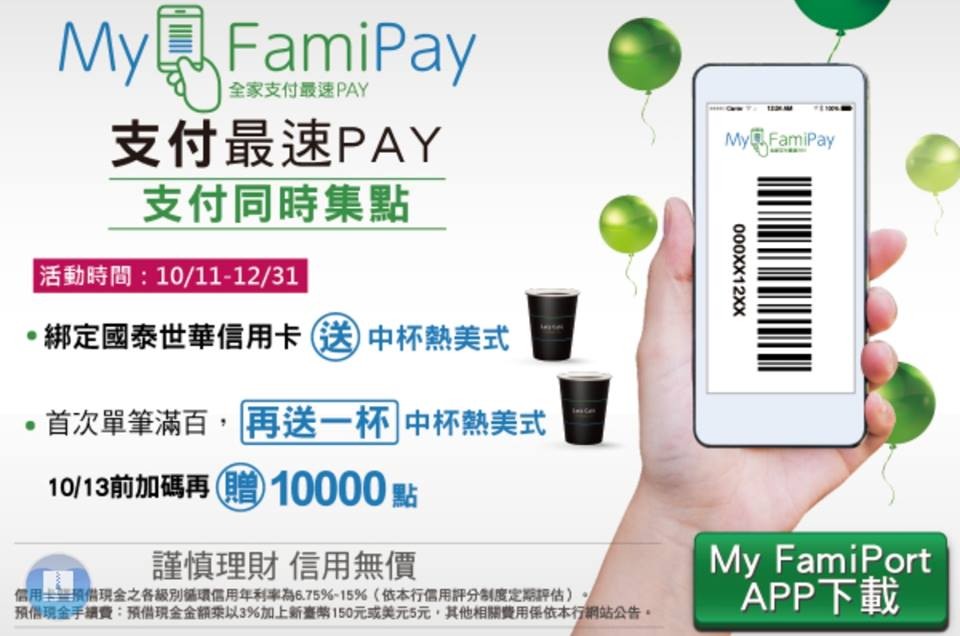 My FamiPay行動錢包為全家便利商店的會員,只要下載再綁定國泰世華信用卡,即可在全家臨櫃透過My FamiPay行動錢包結帳及累積點數,並可於APP選擇信用卡紅利折抵消費金額。首波運用場景為實體店舖購物、代收帳單繳費,如停車費、水電瓦斯費、學雜費、稅款帳單等。